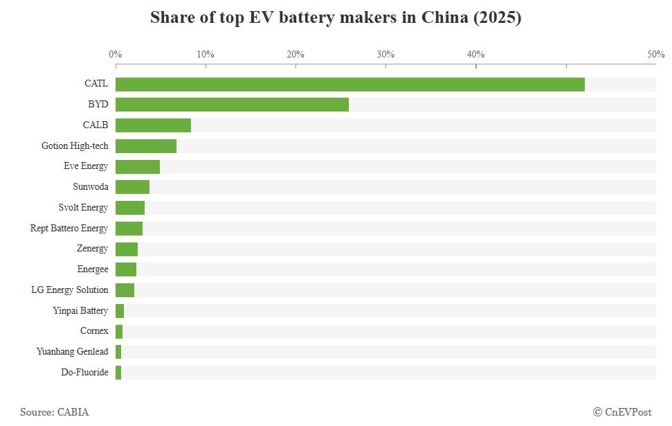 Στη γενική κατάταξη των κατασκευαστών μπαταριών ηλεκτρικών οχημάτων (EV), η Gotion κατέκτησε την 4η θέση με πωλήσεις 43,44 GWh. Το εντυπωσιακό δεν είναι μόνο η θέση, αλλά η δυναμική: η Gotion σημείωσε την υψηλότερη αύξηση μεριδίου αγοράς (+1,06%) σε ολόκληρο τον κλάδο. Την ίδια στιγμή, οι κυρίαρχοι της αγοράς CATL και BYD είδαν τα ποσοστά τους να υποχωρούν κατά -1,66% και -3,16% αντίστοιχα.